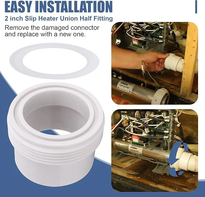 This spa heater union is made out of strong PVC plastic material for resistance against heated water and chemicals. It has a slip fitting, which ensures an extremely tight, secure connection between your heater and the water supply line. This union does not lose its integrity under pressure. Relaxation time will not be compromised, unlike the cheaper alternatives.The O-ring supplied makes that essential sealing, which avoids expensive loss of water and possible damage to the equipment. This heater union gasket has been engineered with precision in such a way that it compresses uniformly, hence creating a watertight barrier that takes years.