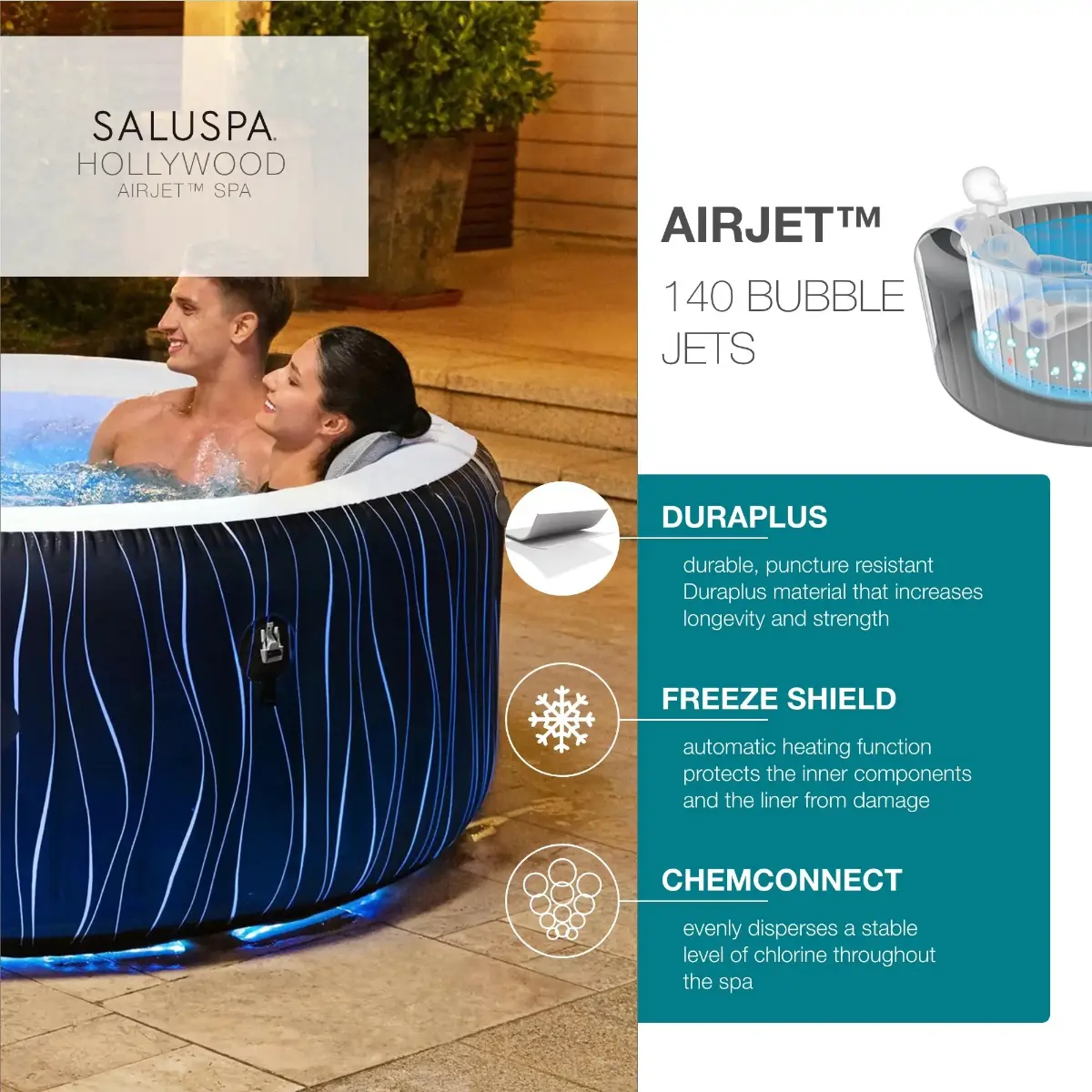 SaluSpa Hollywood AirJet Hot Tub – Ultimate Inflatable Spa Experience